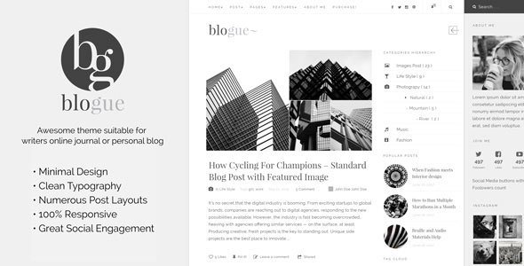 Blogue - Personal WordPress Blog Theme WordPress Hadrian Coty