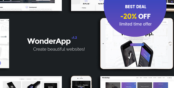 WonderApp - Multipurpose Responsive Landing Page in WordPress with 20+ Elements Darden Cal