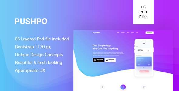 Pushpo - Creative App Landing PSD Template TFx Driscoll Cavan