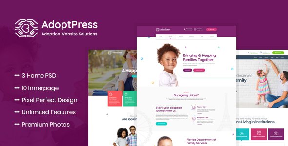 AdoptPress - Child & Pet Adoption Charity PSD Template TFx Kirby Chuck
