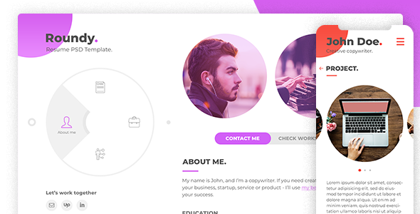 Roundy - Personal Resume / CV / Vcard PSD Template TFx Haruto Shelby