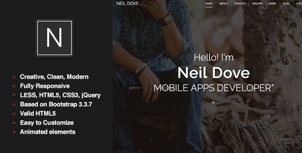 Neil Dove - Personal One Page Portfolio Template TFx Darden Branden