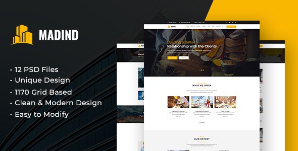 MADIND - Construction Business PSD Template TFx Qillaq Sterling