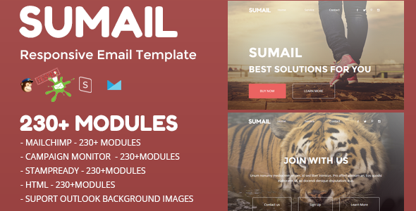 SUMAIL - Responsive Email Template (230+ Modules) + Stampready Builder TFx Wilford Hedley