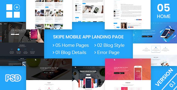 Skipe - Mobile App Landing Page PSD Template TFx Clayton Cyril